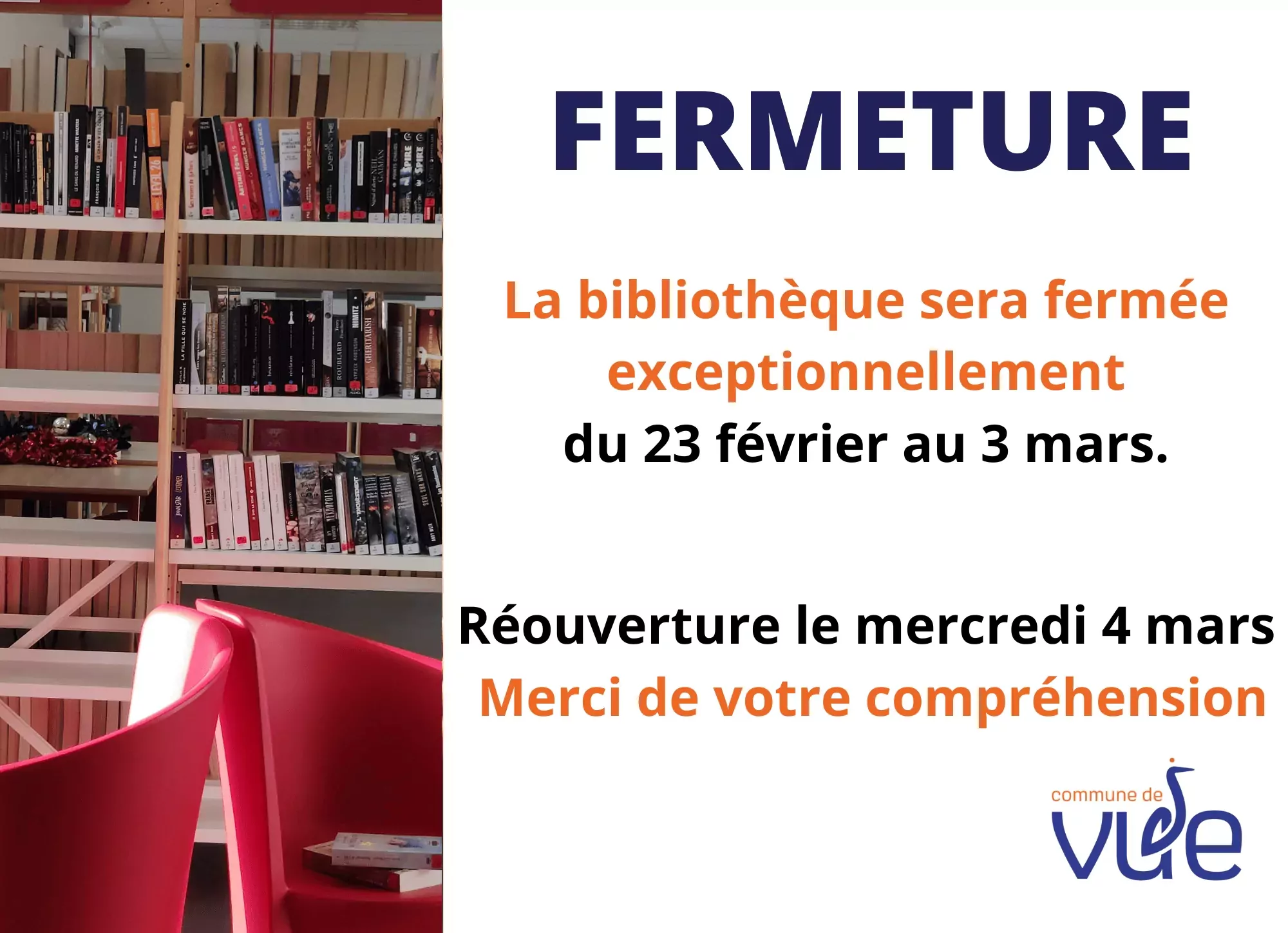 Fermeture exceptionnelle de la bibliothèque municipale du 23 février au 3 mars.